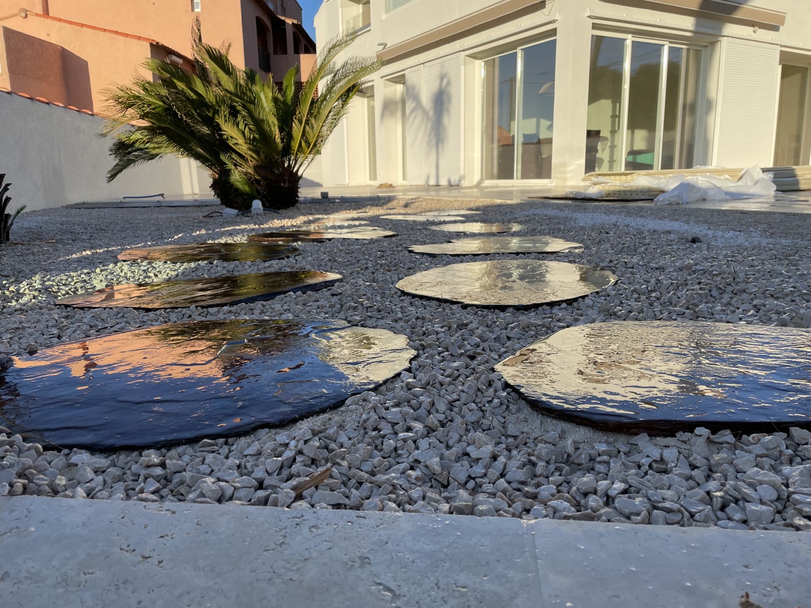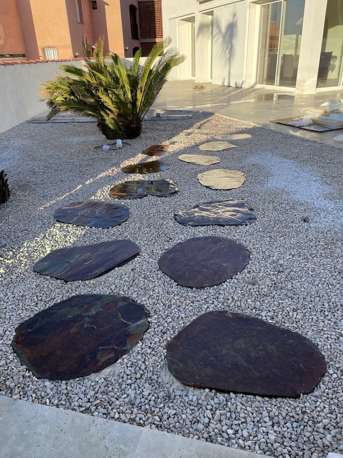 Les "pas japonais" sont des éléments de décoration extérieure utilisés pour aménager les jardins, les allées, les terrasses et autres espaces extérieurs. Ils sont originaires du Japon et sont utilisés dans la conception de jardins japonais traditionnels, d'où leur nom. Les pas japonais sont généralement constitués de dalles plates en pierre, en béton ou en bois, disposées de manière régulière pour former un chemin ou une série de marches dans un jardin.