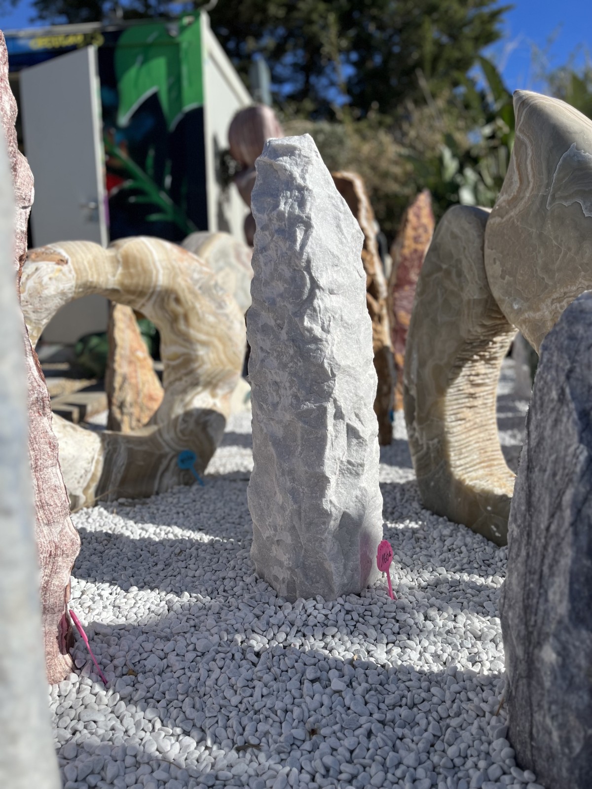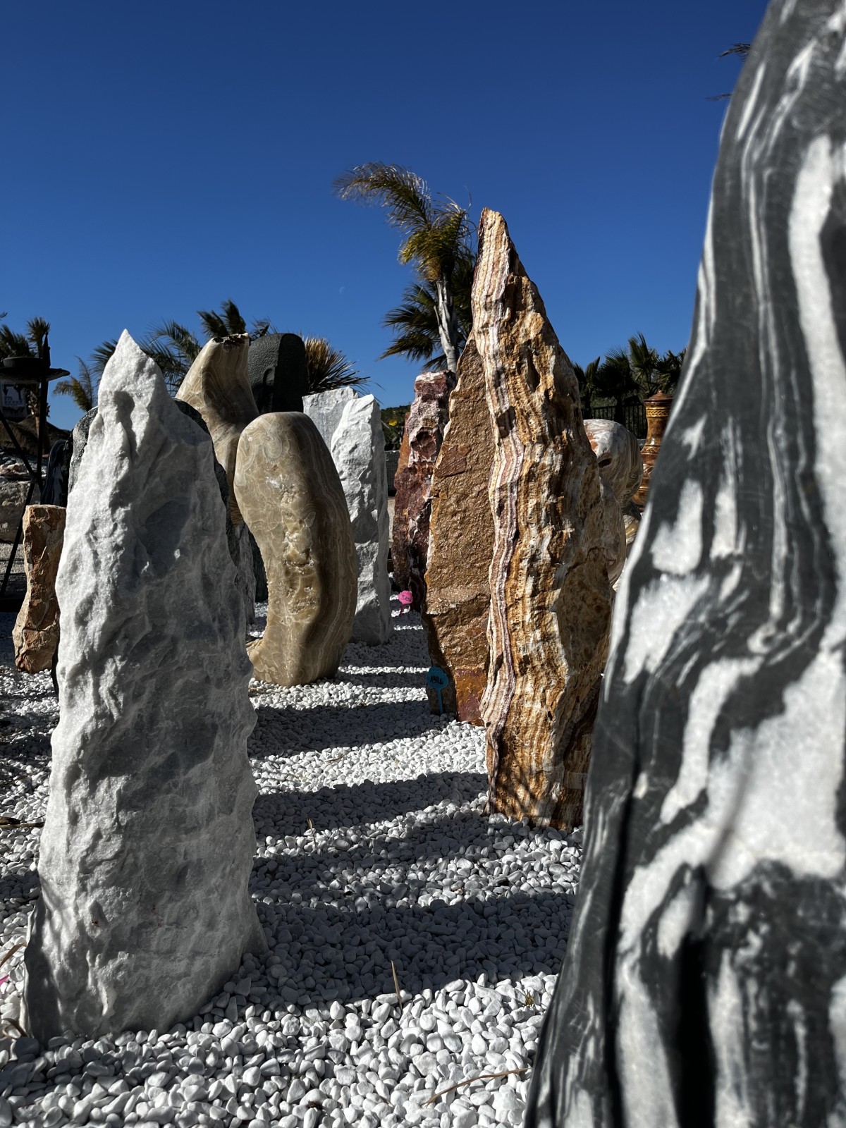 Fabriqué à partir d'une seule pièce de pierre, souvent de granite, de marbre, de basalte onyx, Quartz, Ardoises, Gneiss, ou d'autres types de pierre naturelle, ces monolithes arrivent du monde entier, Turquie, Bangkok, Lima, un choix de couleurs pour la décoration de jardin en raison de son allure majestueuse et de son charme intemporel.